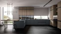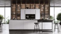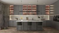 The wood veneer is rough and unrestrained, with a vigorous atmosphere; Together with the rocky kitchen background and dark gray Nakajima,it neutralizes the wild temperament, It has converged to just the right size, and people inadvertently like the measurement of this space. Glittering texture is coming; simple lines are smooth, clear and unobstructed, The embedded space is ample and intimate, and reason is hidden in each storage space.