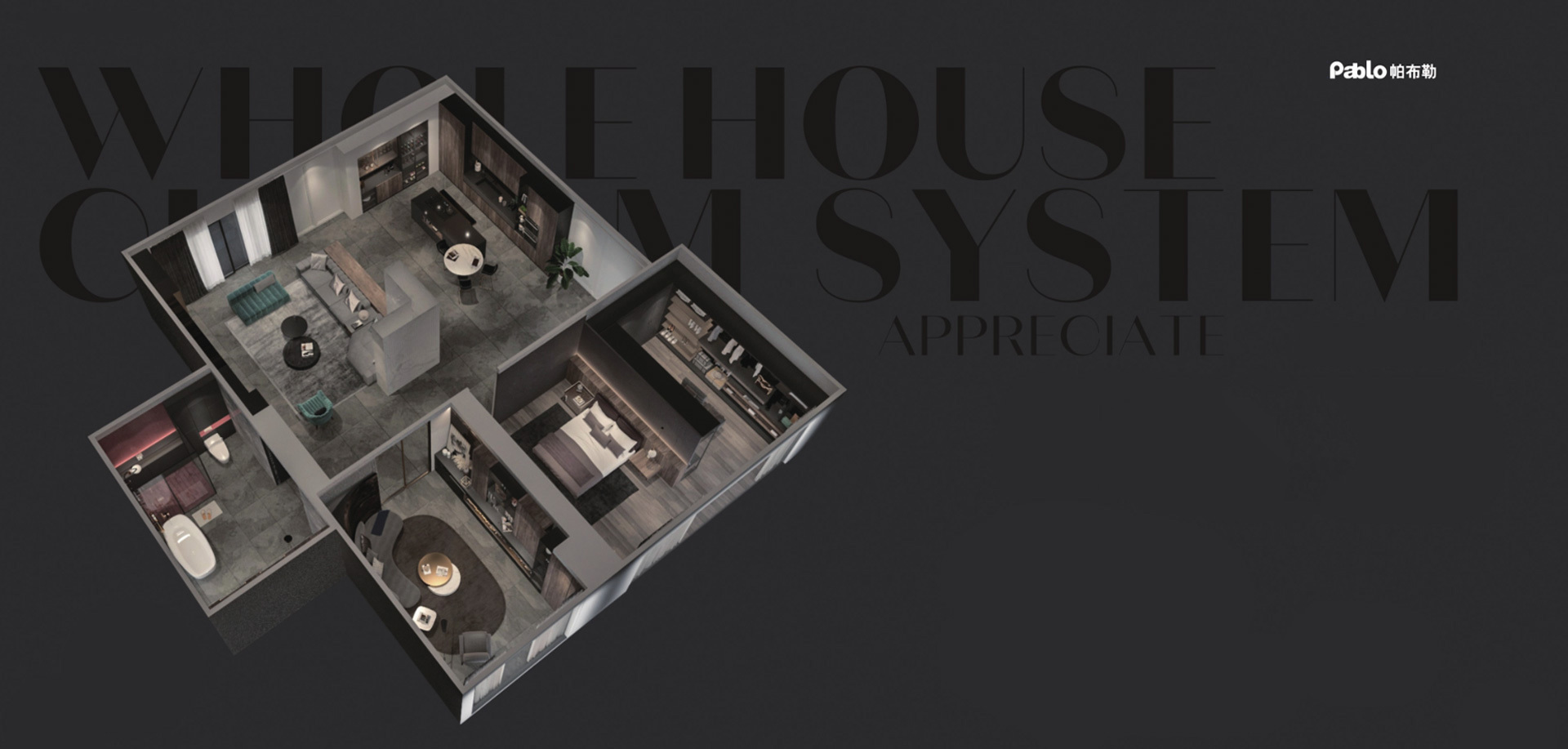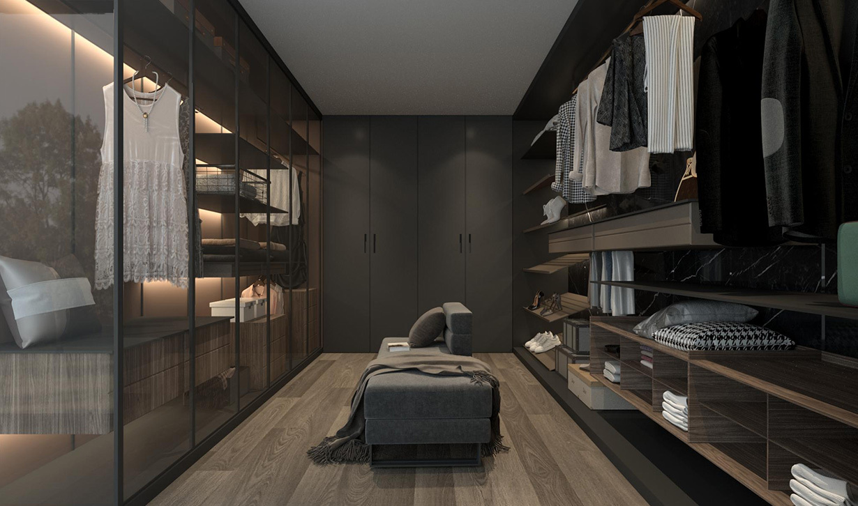 The exciting design is romantic between square inches, The persistent obsession in the details, This is the great pride and satisfaction given by Pablo's cloakroom. Bright and early morning, Awaken a brand new self in the luxurious cloakroom, Express life attitude with clothing, Express life ideals in a pattern, In Pablo ’s well-designed cloakroom, Round the texture life you dreamed of.