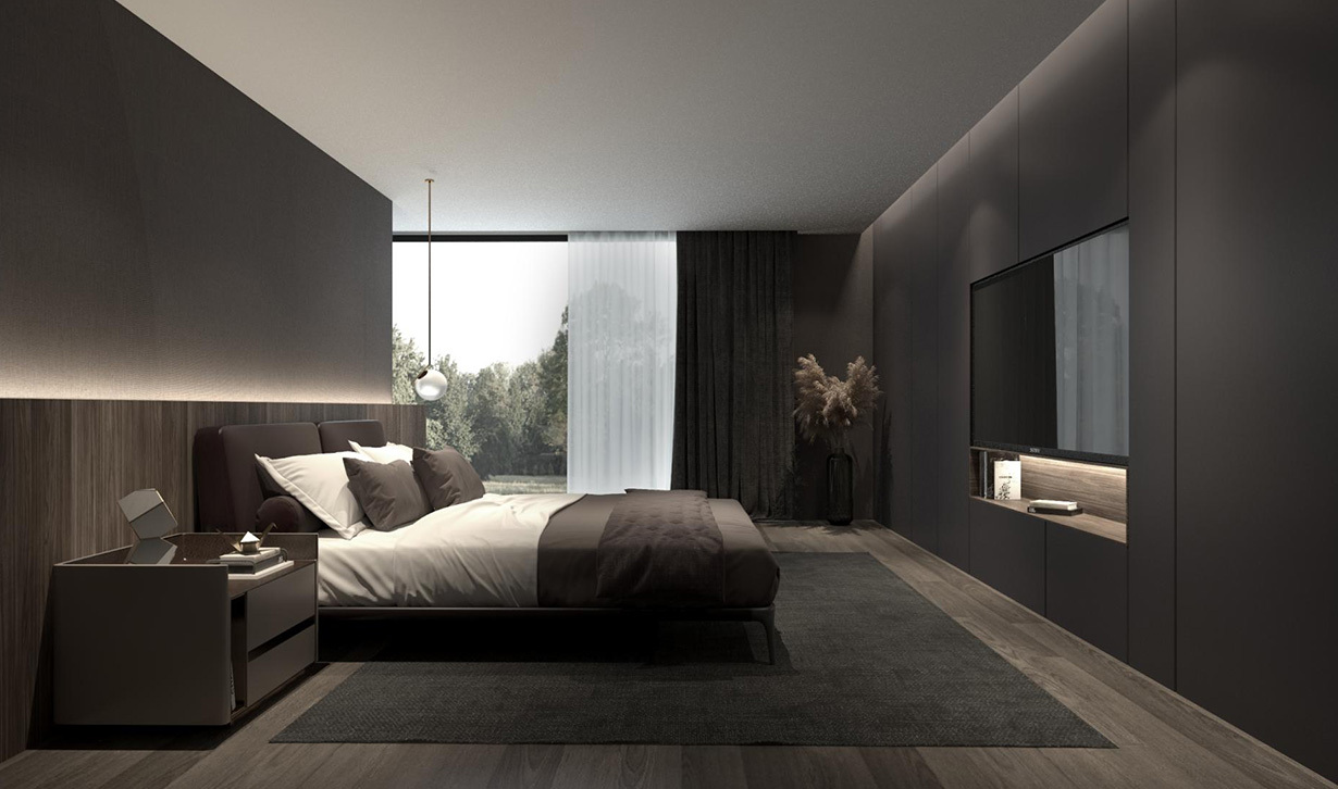 The bedroom closet perfectly uses space for design, Does not take up too much space, But it plays the dual role of TV wall + wardrobe. Reasonable layout, functional storage; Visual satisfaction, spiritual intimacy; Have reached a kind of extreme.