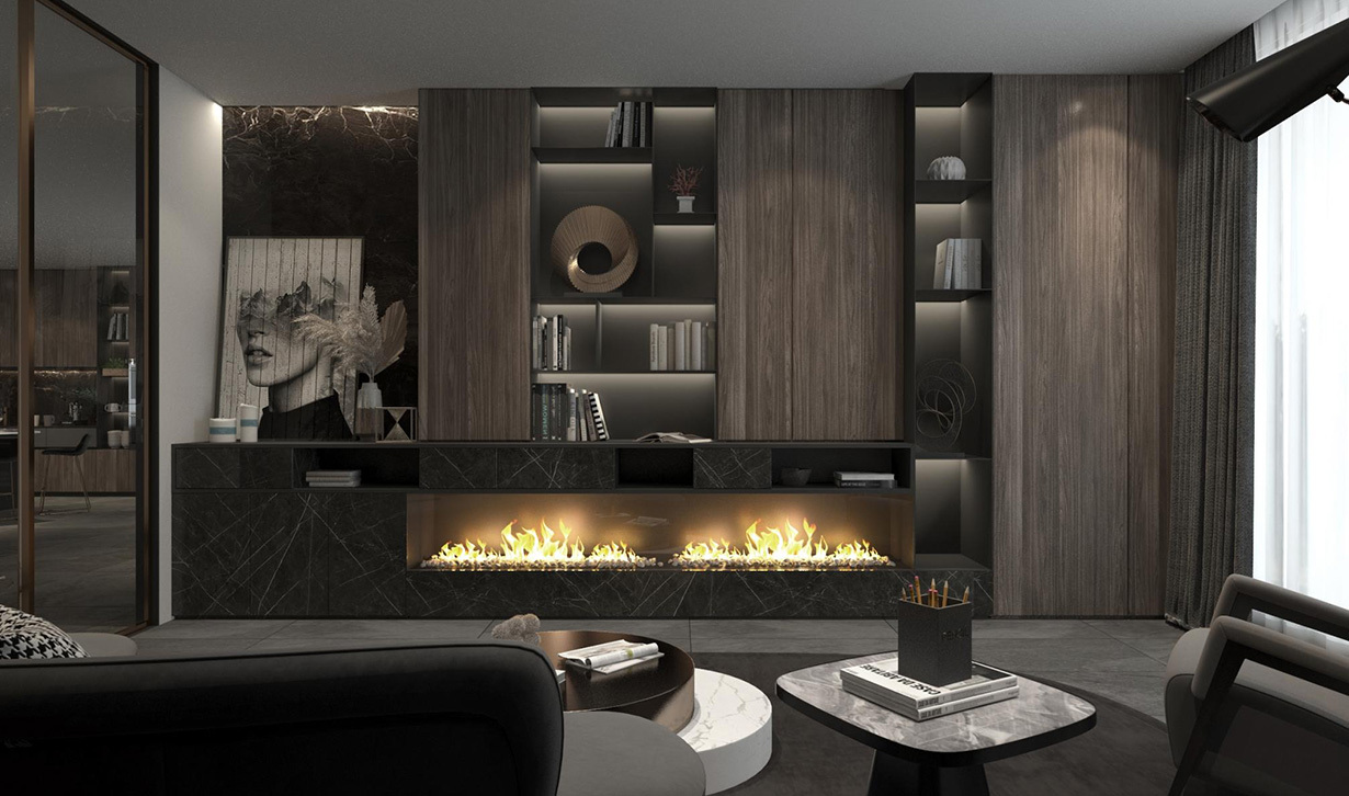 客廳電視背景系統(tǒng)柜每個單元的誕生都是為了滿足“自主”的不同需求,無論是金屬感十足的格子架立柜組合、還是巖石紋電視背景墻即滿足視覺上的舒適,同時顯得高級內斂,盡情展現(xiàn)了輕工業(yè)風的輕奢美感。