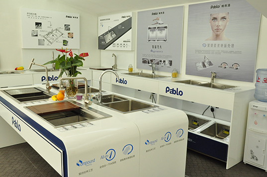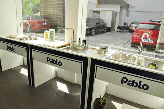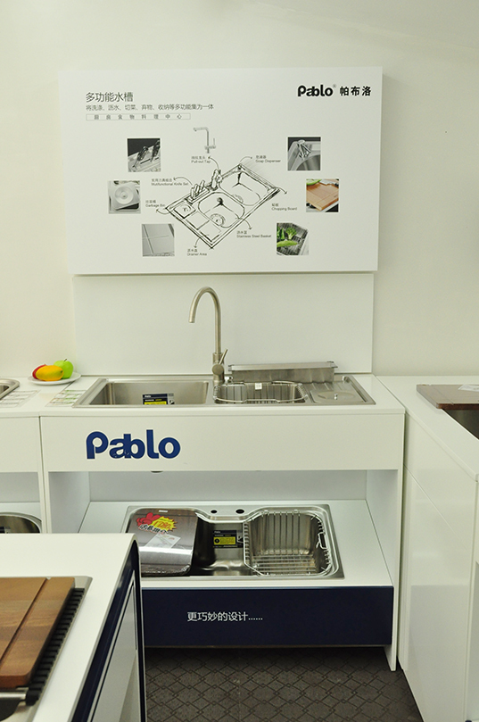 該店是帕布洛水槽三大核心科技:復(fù)合拉伸工藝、緊致柔光表面處理、全效合一下手系統(tǒng)在終端的首次亮相。作為多功能水槽的鼻祖和業(yè)內(nèi)唯一生產(chǎn)全系列臺下盆的專業(yè)制造商,帕布洛的藍(lán)爵系列和泰晤士系列水槽也得到充分體現(xiàn)。