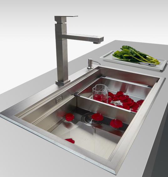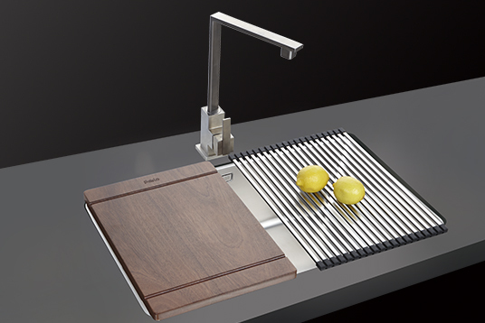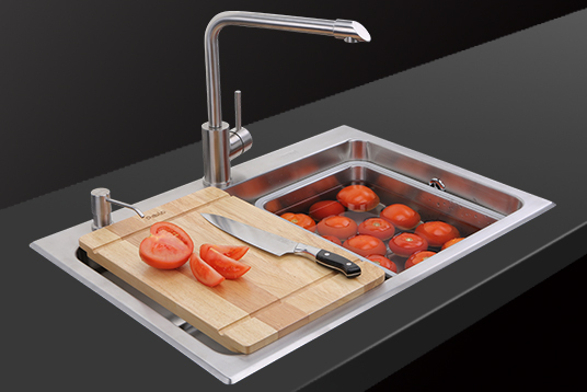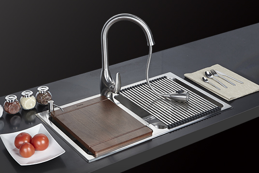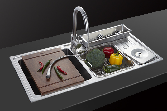 該系列通過(guò)集成刀具、垃圾桶、瀝水等配件,將洗滌、瀝水、切菜、棄物、收納等多功能集為一體,堪稱(chēng)“廚房食物料理中心”。帕布洛是早期多功能槽的標(biāo)桿品牌。