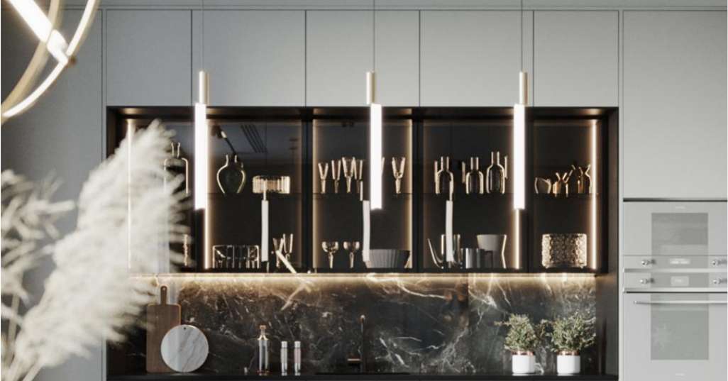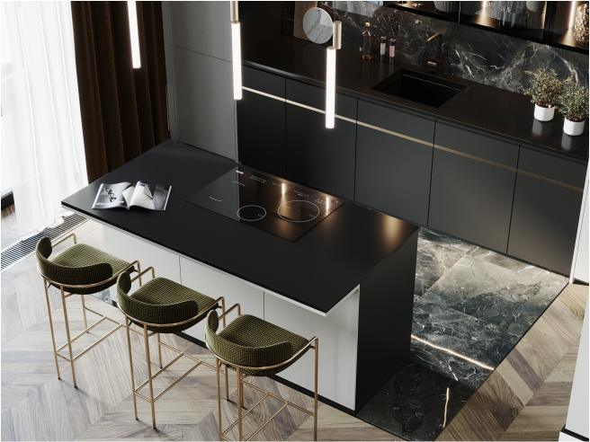 簡(jiǎn)約的柜體搭配金屬元素給人感覺(jué)質(zhì)感輕盈精致,恰是個(gè)性輕奢的另一種表達(dá)、色彩和節(jié)奏,暖色燈光的溫潤(rùn)、金屬的高冷、深灰色的厚重、彼此之間潛藏的色調(diào)深度層次,讓整套廚柜充滿動(dòng)態(tài)感。