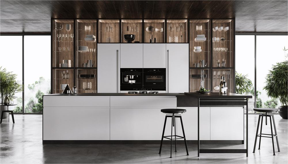 把地中海元素匯入當代輕奢中,通過大膽而創(chuàng)新的設計完美融入到廚房之中,清新而不失優(yōu)雅,唯美的藝術色彩給廚房生活賦予了無限的價值,正是時尚敏感、追趕潮流個性的年輕人群的心意選擇。
