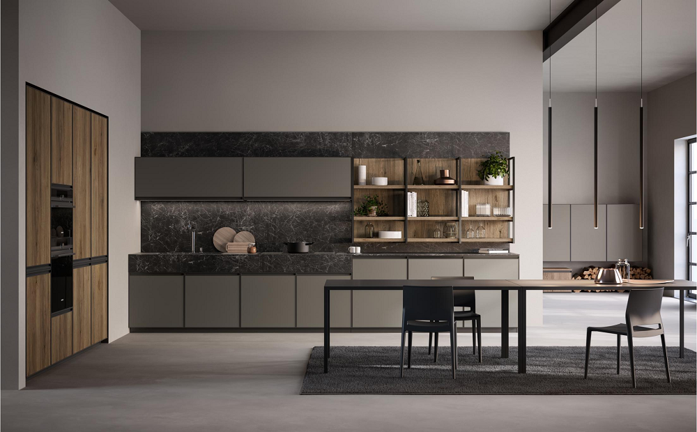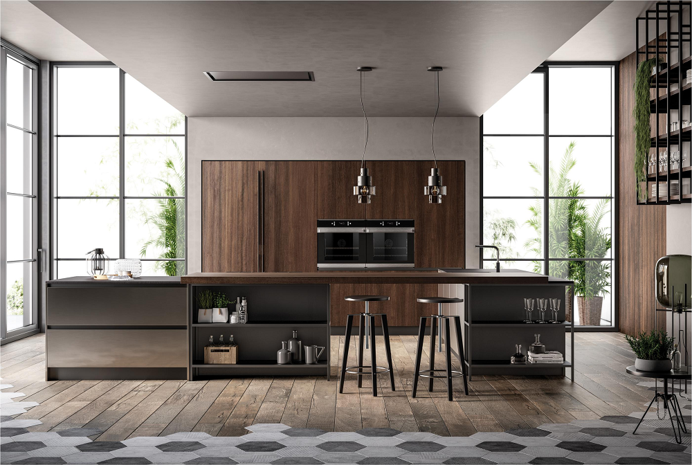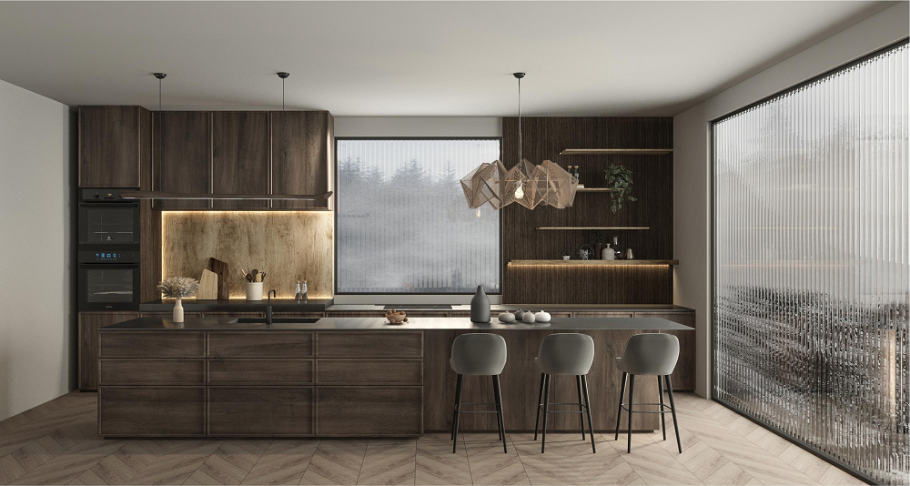 當(dāng)暖暖的原木色與灰綠變成整個(gè)櫥區(qū)的主角,黑色的加入讓廚房空間多了一分層次感,巧妙的產(chǎn)品布局,色塊的拼接與碰撞,輕工業(yè)風(fēng)與現(xiàn)代極簡(jiǎn)的多元的組合,令開(kāi)放式櫥區(qū)呈現(xiàn)出豐富視覺(jué)風(fēng)貌,給你滿分櫥區(qū)體驗(yàn)。